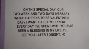 My firefly and I have been dipping into the dopamine decanter so much that we're celebrating any reason to see each other mid-week; Valentine's Day presented us Tuesday, rehearsal and the imperative to do laundry gave us Thursday.